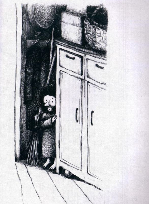 За дверь шкафа Сашка задел подтяжками от штанов случайно, торопился очень. Одна из дверей выстрелила наружу, выставив во всей красе низкорослого, заросшего волосами бородатого человечка с испуганными глазами.
