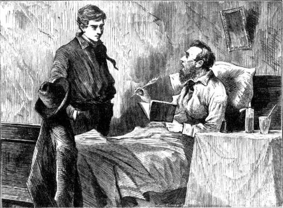 The steward was a tall, lank, lantern-jawed man, whose cheek-bones were almost as prominent as his long nose. His face was pale, in spite of the bronze which a West India sun had imparted to it, and his hair was long and straight. He had a very thin beard of jet black, which contrasted strongly with the pallor of his face. His voice was hollow, and sounded doubly so from the drawl with which he uttered his sentences, and every remark he made was preceded by a single long-drawn hacking cough, which might have been caused by the force of habit or the incipient workings of disease. He was seated in the galley, abaft the foremast of the brig, and when the passenger showed himself at the door of the galley, he had been engaged in writing in a square record-book, which he closed the instant the visitor darkened the aperture of his den.