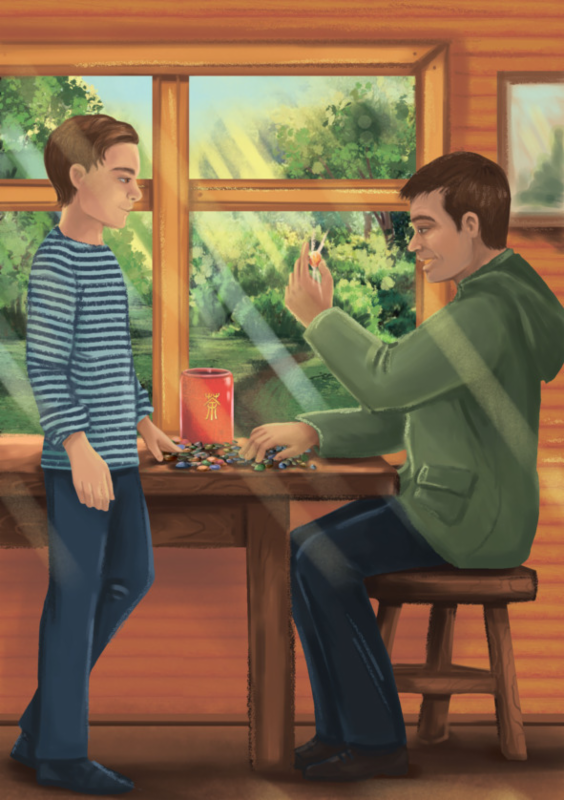 Вернулся он с красной, в белых иероглифах жестяной банкой, найденной на берегу. Нетерпеливые пальцы приезжего подхватили банку и перевернули над столом. Весело громыхая, раскатились по клеенке гладкие, отполированные струями голыши. Розовые, палевые, молочные, зеленоватые, подобные созревающей смородине, голубоватые, как море в солнечный день, бледно-оранжевые, как поспевающие ягоды костяники…