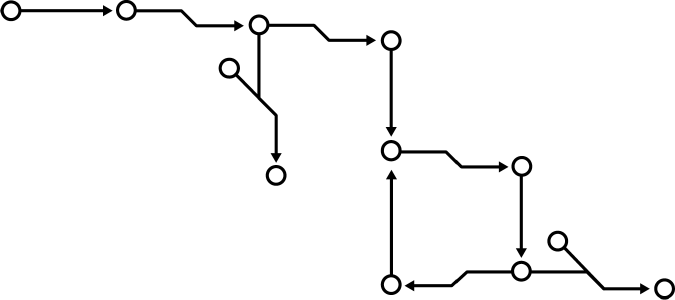 Алгоритм состоит из точек, представляющих собой входящие и выходящие данные, и линии, соединяющей их. Довольно просто, верно? Со временем мы начнем рассматривать алгоритмы, которые будут выглядеть так: