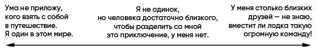 Итак, мы осмотрели свою лодку, оценили ее состояние — теперь подумаем о том, кто отправится в путешествие вместе с нами. Конечно, это сугубо личный процесс, но вы вовсе не должны предпринимать одиночное плавание. Стремление к росту затрагивает межличностные отношения, а исследования показывают, что присутствие рядом друга, партнера или коллеги, которому близки наши идеалы, повышает вероятность успеха, а также уровень удовлетворенности жизнью и психологического здоровья [3].