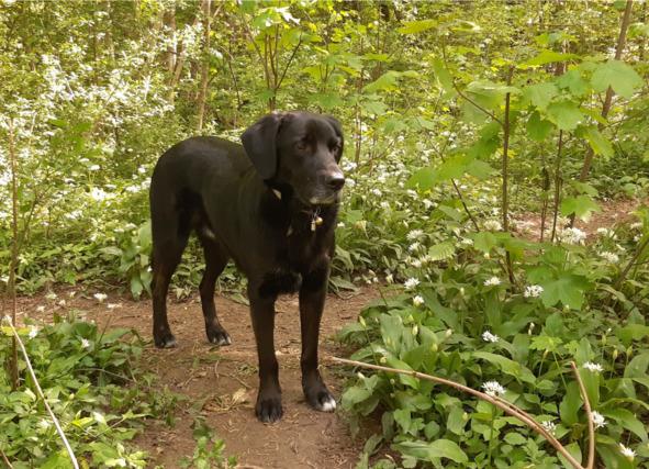 Похоже, что для сОбака это был первый раз, что мы забрели в такие густые заросли цветущего = вонючего дикого чеснока… Четверолапый был ошарашен.