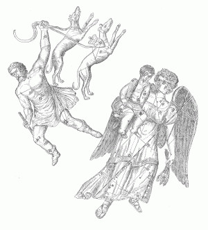 The half year of decreasing days, extending from the Summer to the Winter Solstice, was personified by the figure, which, representing the constellations of Leo and Aquila, and composed of the winged body and limbs of a lion, with the head of an eagle, was called the Seraphim. These last two personifications constituted the Archangels of the ancient Astral Worship.