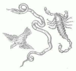 The last quarter of the year was personified in the ancient allegories as a decrepit old man, who, stung by a Scorpion (Scorpio), and fatally wounded by an arrow from the quiver of an archer (Saggitarius) dies at the Winter Solstice; and, after lying in the grave for the space of three days, is brought to life again. Such was the personification referred to in the Christian Gospel-story as having been raised from the grave by the mandate, "Come forth, Lazarus." Thus have we shown that the elders and the saints; the angels, and the Archangels; the Cherubim and Seraphim; and also poor old Lazarus, are but personifications of the several divisions of time.