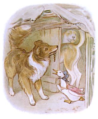 The collie-dog Kep met her coming out, "What are you doing with those onions? Where do you go every afternoon by yourself, Jemima Puddle-duck?"