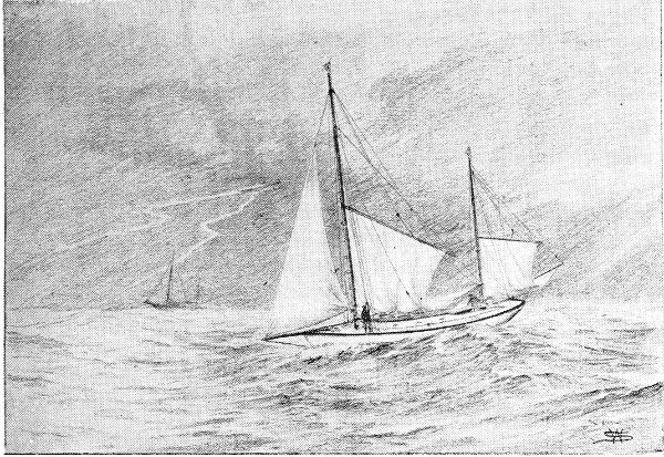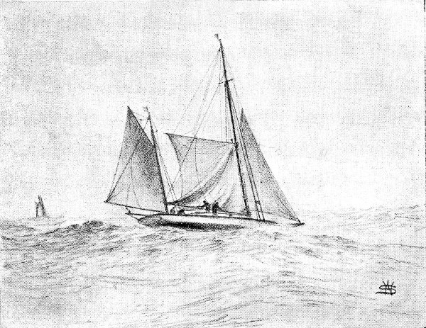 When making sail, the mate and the tackman go to the main halyards, one taking the throat and the other the peak. The skipper and his watch look out for the lashings, crotch, sheet, and see the gaff clear of the lifts. If the boat is a yawl, they cast loose and hoist the mizzen, the mate and tackman attending in the same way to the headsails. The after guard looks after the jib sheets and backstays, the forward gang get the anchor and cat it, standing by forward until she is properly cast and underway; then they clear up decks.