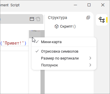 Те же действия можно выполнить через главное меню: Главное меню > Вид > Переключить мини-карту.