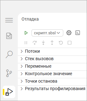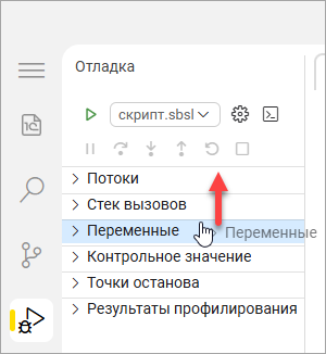 Измените порядок разделов в представлении «Отладка». Отладка – это специальный режим исполнения скрипта, в котором вы можете просматривать значения переменных, чтобы найти и устранить ошибки в работе скрипта. Обычно среда разработки «1С:Предприятие.Элемент» автоматически открывает это представление, когда происходит останов исполнения скрипта. Но вы можете открыть его вручную, нажав на значок в левой панели действий.