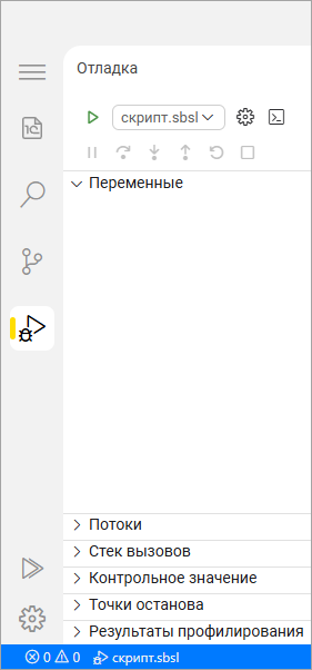Представление Отладка содержит несколько разделов, и сейчас все они закрыты. Вам для отладки прежде всего будут нужны переменные. Поэтому ваша задача – переместить раздел Переменные на самый верх и раскрыть его.