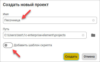 - Нажмите Новый проект, укажите название проекта и выберите каталог, в котором будут находиться ваши скрипты.