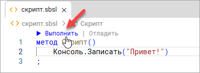 - Нажмите Выполнить над строкой метод Скрипт().
