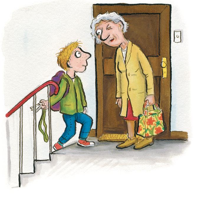 На втором этаже он столкнулся со старой фрау Вильгельм. Она держала в руках сумку в цветочек. Эта фрау Вильгельм всегда была очень странной: то и дело сновала по лестнице вверх-вниз и торчала то у одной двери, то у другой. Иногда утром папа или мама открывали входную дверь, а на пороге стояла фрау Вильгельм — будто только что подслушивала или подглядывала в замочную скважину.
