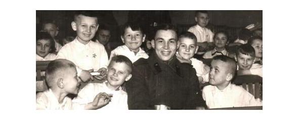 Какой-то солдатик даже сфотографировался с нами на память. Так у меня и появилась фотография одноклассников с солдатом, где мы сидим в рядах зала, а он впереди нас. Он даже пришёл со мною попрощаться перед демобилизацией.
