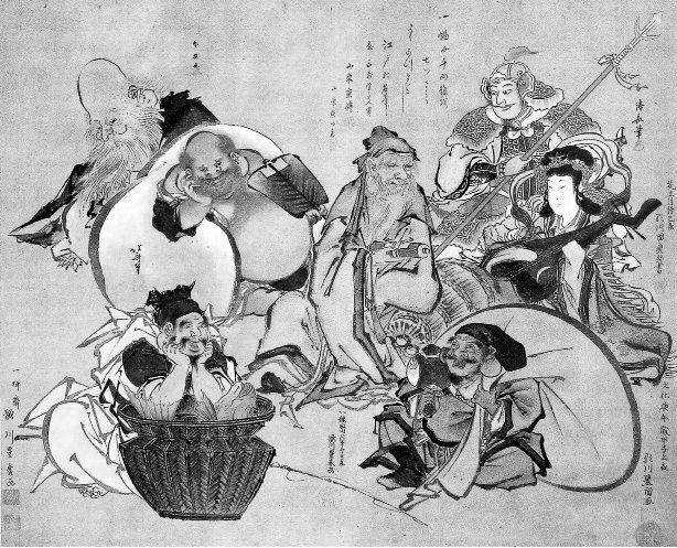 3. Мифологические ками. Это все те божества, которые появляются в официальной мифологии: им посвящены многочисленные храмы и святилища по всей стране, их имена известны и почитаемы, они являются наивысшей ступенью в иерархии японских ками. К этой же группе можно отнести и тех божеств, которые пришли из других стран, но стали частью японской религии (о них будет рассказано подробнее в главе про буддизм).