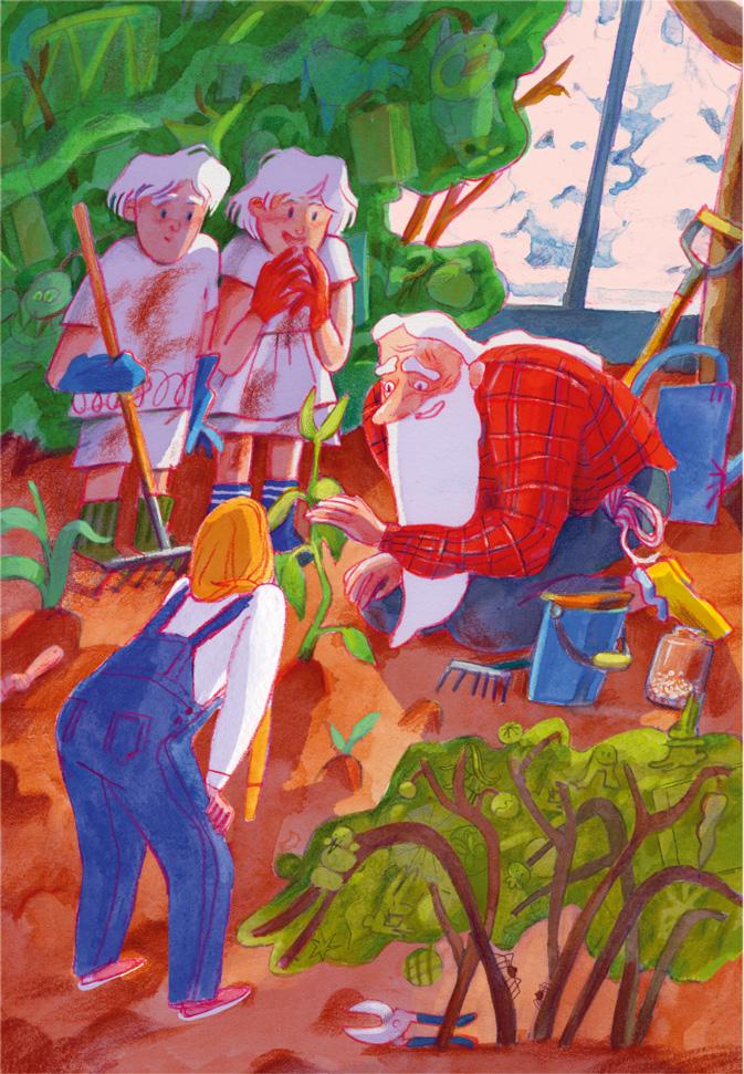 Дед Мороз, в спортивных штанах и старой клетчатой рубашке, стоял на коленях посреди грядки. Вокруг уже вовсю плодоносили деревья желаний: на могучих ветках дозревали наборы лего и плюшевые единороги, кусты прогибались под тяжестью кн