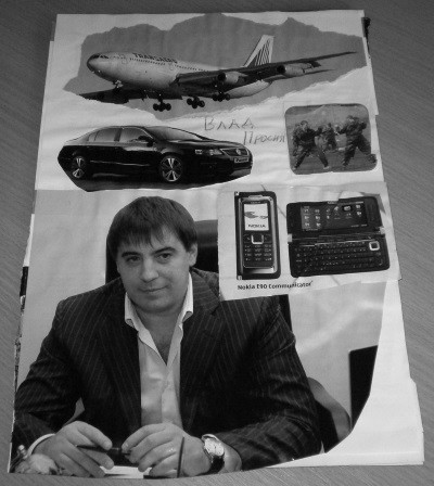 На занятии «Вперед, в будущее!» детям было предложено создать коллаж на тему «Мое будущее, или Я через 20 лет». Просматривая работы, созданные детьми в ходе этого занятия, автор отметила, что большинство детей были сконцентрированы на том, чтобы создать образ своего будущего материального благополучия. Об этом говорило обилие материальных вещей, присутствующих в коллажах (сотовые телефоны, машины, предметы быта, украшения, одежда и т. д.). Часть детей отметила профессиональную составляющую своего будущего («Буду бизнесменом», «Буду владелицей автосалона», «Буду работать с животными», «У меня будет свой салон красоты» и т. д.).