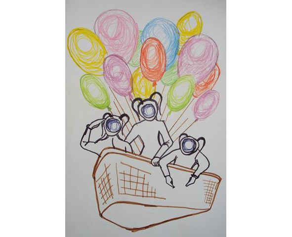 Если первое летящее «что-то» было похоже, на мой взгляд, на гроздь воздушных шаров, привязанных к большой корзине, или как олимпийский мишка в Москве на Олимпиаде-80, то второе, в противоположном конце неба, было чем-то белым, треугольным и заканчивалось таким же белым небольшим хвостом.