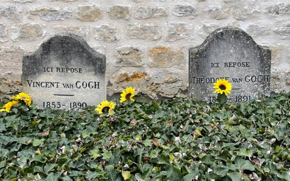 Ограда казалась бесконечной. Мы решили попросить помощи у рабочих, которые ремонтировали ворота. Вернее, они ничего не ремонтировали, а с интересом наблюдали за нами. Хорошо, когда с тобой спутница, говорящая по-французски. Услышав вопрос, рабочие закивали, но не стали показывать пальцем направление, а пошли с нами. Вчетвером подошли к могиле. Помолчали. Скромные плиты, скромные слова: «Здесь покоится Винсент ван Гог», «Здесь покоится Теодор ван Гог». Вспомнил, что у Бога нет мертвых. Не надо говорит «умерший», лучше «усопший». Над братьями растут подсолнухи. Радостные, золотые. Как на картинах Ван Гога.