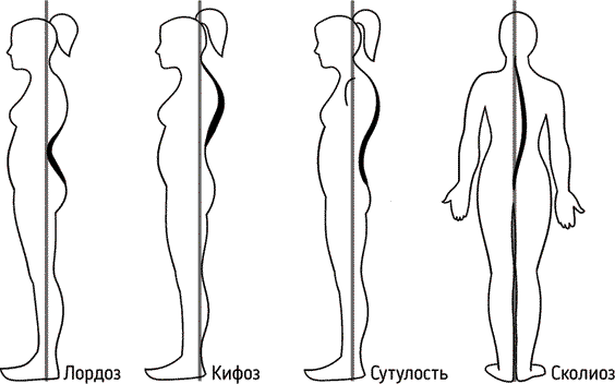 Рис. 1. Естественные изгибы и патологии позвоночника