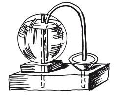 Но не думайте, что всегда легко отличить термометр от барометра. Есть такие термометры, вернее, термоскопы, которые с не меньшим правом могли бы называться барометрами, и наоборот. Примером может служить старинный термоскоп, придуманный Героном Александрийским. Когда солнечные лучи пригревают шар, воздух в верхней части шара, расширяясь, давит на воду и вытесняет ее по изогнутой трубке наружу; вода начинает капать из конца трубки в воронку, откуда стекает в нижний ящик. В холодную же погоду, напротив, упругость воздуха в шаре уменьшается и вода из нижнего ящика вытесняется давлением наружного воздуха по прямой трубке в шар.