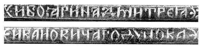 Рис. 6. Окончание владельческой надписи «САБЛЯ КОНЮШЕГО И БОЯРИНА ДМИТРЕЯ ИВАНОВИЧА ГОДУНОВА» на сабле Д. И. Годунова. Взято из [88:1]