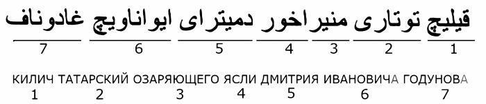 Рис. 7. Персидская надпись «Сабля («кылыч») татарская озаряющего ясли Дмитрия Ивановича Годунова». Приведена по [88:1]