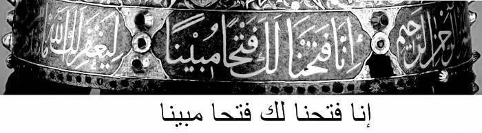 Рис. 9. Арабская надпись по ободу шлема князя Ф. И. Мстиславского, XVI век. Написано: «…Милосердный // Воистину, Мы открыли тебе открытием ясным // Да простит тебе Бог…» Перевод И. Е. Билык. Взято с сайта музея «Московский Кремль» kreml.ru, расшифровку внизу добавили мы