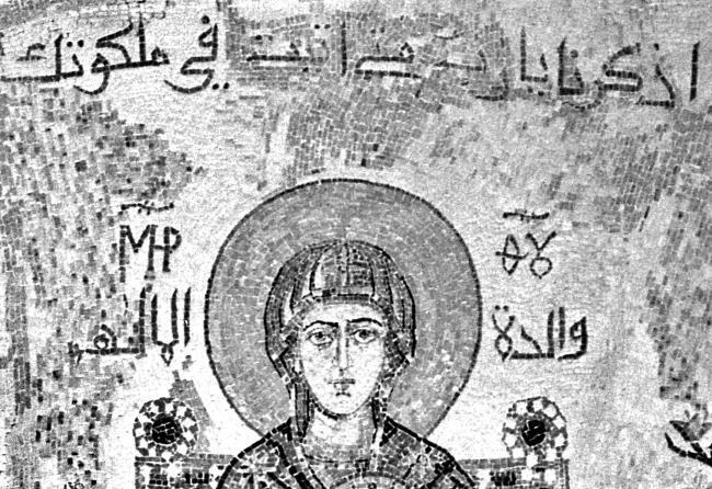 Рис. 15. Часть иконы с ликом Богоматери. Вокруг надпись «Матерь Божия» на греческом и арабском языках. В частности, видно, что по-арабски слово «Бог» на христианской иконе пишется как «Аллах»