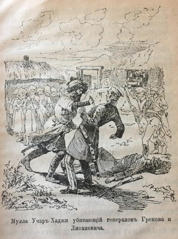 Немногие кумыки успели выскочить из укрепления, но и тех, видя тревогу, переколола команда, возвращавшаяся из лесу ожесточенные солдаты хотели даже идти разорять Аксай, и полковнику Сорочану, принявшему начальство после смерти Грекова, стоило большего труда удержать их ярость. Лисаневич, зажимая левою рукою рану, между тем машинально шел к воротам за кумыками, которых кололи. Поручик Трони и Соколов, опасаясь чрезмерной потери крови, его удерживали. «Что вы? Мне ничего! Сказал им генерал: — он меня только ткнул немного». «Однако надо перевязать рану», возразил Трони и повел его в комнату. На пороге Лисаневич лишился чувств; его отнесли в постель и раздели. Осмотр раны показал, что, пробив два ребра, кинжал прошел насквозь легкое, ниже правого соска. Греков лежал бездыханный. Через несколько дней в Грозной умер и Лисаневич. Так погиб в цветущих летах, когда ему не было и 35 лет, храбрый и даровитый генерал Греков, «гроза чеченцев», которому все предвещало блестящую военную карьеру. К счастью, он не оставил по себе горького плача — он был одинок, и отошел в вечность, сопровождаемый только сожалением товарищей-подчиненных. В лице генерала Дмитрия Тихоновича Лисаневича Кавказская линия и весь Кавказский край понесли также большую и незаменимую утрату. Лисаневич происходил из небогатой дворянской семьи, Воронежской губернии, и его военная карьера была сделана без связей и протекций- взята в боях исключительно личным мужеством и военными дарованиями. Он начал службу в 1793 году на Кавказе, в Кубанском корпусе, рядовым, и первый поход свой сделал с армиею графа Зубова к персидским пределам. Там, под стенами Дербента, Лисаневич, тогда еще 18-ти летний юноша, на глазах главнокомандующего штурмовал крепостные башни, а в кровавом бою под Алпанами заслужил офицерские эполеты. Когда Кубанский корпус был расформирован, Лисаневич поступил в славный 17-й егерский полк и перешел с ним в Грузию. Уже через два года по прибытии в Грузию, он, командуя ротой, обратил на себя особенное внимание в Осетинском походе, и на 24-м году от роду был штаб-офицером. Еще год, и Ганжинский штурм сделал имя Лисаневича известным всему Грузинскому корпусу. Здесь командуя батальоном, он первый вошел на крепостную стену и во главе своих егерей ворвался в укрепленную башню, где защищался и погиб сам Джават-Хан Гаджинскийэ. За этот блестящий подвиг Лисаневич получил Георгия. Во время персидской войны, на долю Лисаневича выпал ряд новых подвигов, между которыми особенно замечателен бой 28-го сентября 1808 при Кара-Бабе, где он выдержал с батальоном пехоты нападение целой персидской армии. И не далее как через месяц, 3-го декабря, ему же обязаны были снова поражением персидской армии, пытавшейся заградить отряду обратный путь у той же Кара-Бабы. В 1810 году он был одним из главных виновников знаменитой победы под Ахалкалаки, и подвиг, совершенный здесь, распространил известность Лисаневича далеко за пределы Кавказа, по всей русской армии, так как Император Александр повелел сообщить о нем в приказе по войскам, «в назидание современникам и потомству, что истинная храбрость заменяет числительность, побеждает природу и торжествует над многочисленностью неприятеля». В этом бою два русские батальона, предводимые Паулуччи и Лисаневичем, буквально истребили десятитысячные персидско-турец