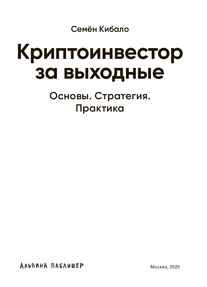 Книга будет полезна тем, кто хочет разобраться, что такое блокчейн и как устроен мир криптовалют в целом. С помощью этих знаний можно не только избежать типичных ошибок, но и значительно повысить шансы на успешный старт в мире криптоинвестиций. При этом Семён Кибало не идеализирует рынок и не замалчивает риски. Он с первых страниц подчеркивает, что криптовалюта — это крайне волатильный и рискованный финансовый инструмент, на котором можно как заработать, так и потерять деньги. Если бы с такого честного предупреждения начинались все разговоры о криптоинвестициях, возможно, многие новички смогли бы избежать ненужных потерь.