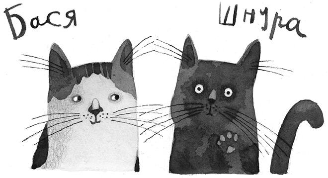— Две… Кошка Бася — толстенькая и беленькая. Кошка Шнурок — чёрненькая и вечно спящая.