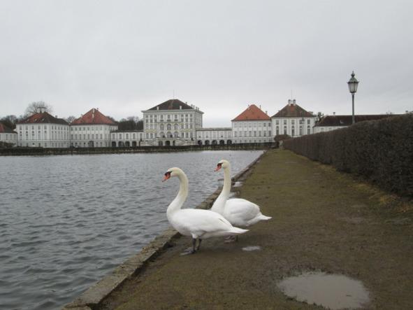 Развернувшись, на семнадцатом трамвае рванули в Нимфембург — это такой довольно-таки обшарпанный дворец на окраине Мюнхена. За исключением, пожалуй, Нойшванштайна, все остальные заведения этой серии производят впечатление убогости по сравнению хотя бы с Санкт-Петербургом, где бюджет льётся в реставрационные работы и обслуживание таких объектов рекой. Поэтому не буду умиляться, как в некоторых читанных отчётах, переползанию трамвайчиков по изогнутому мосту. Мост почти ровный и ничего удивительного в этом, как и в дворце типа сарай, расположенном неподалёку не усмотрел. Внутри самого дворца холодно, сыро. Служители сидят возле электрических каминов в ватниках в полутьме. Единственная обнаруженная польза данного заведения — наличие безоплатной камеры хранения с огромными ящиками, в которые поместится даже большой чемодан. Закрывается такой ящик после того, как вы оставите внутри залог — один, или два евро, причём монеткой нужно запастись заранее. Ключ остаётся у вас хоть на целый день (не пропустите время закрытия музея!!!!).