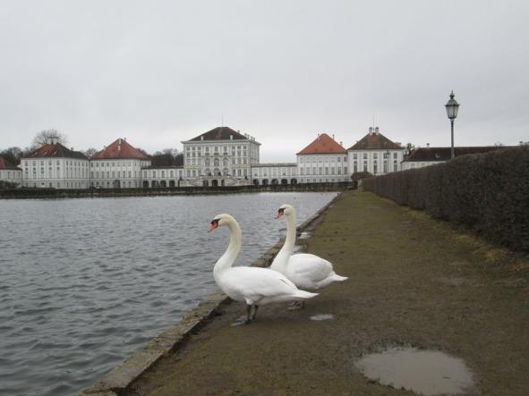 Развернувшись, на семнадцатом трамвае рванули в Нимфембург — это такой довольно-таки обшарпанный дворец на окраине Мюнхена. За исключением, пожалуй, Нойшванштайна, все остальные заведения этой серии производят впечатление убогости по сравнению хотя бы с Санкт-Петербургом, где бюджет льётся в реставрационные работы рекой. Поэтому не буду умиляться, как в некоторых читанных отчётах, переползанию трамвайчиков по изогнутому мосту. Мост почти ровный и ничего удивительного в этом, как и в дворце типа сарай, расположенном неподалёку я не усмотрел. Внутри самого дворца холодно, сыро. Служители сидят возле электрических каминов в ватниках в полутьме. Единственная обнаруженная польза данного заведения — это наличие безоплатной камеры хранения с огромными ящиками, в которые поместится даже большой чемодан. Закрывается такой ящик после того, как вы оставите внутри залог — один или два евро, причём монеткой нужно запастись заранее. Ключ остается у вас хоть на целый день (не пропустите время закрытия музея!!!!).