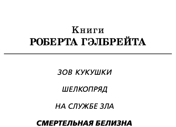 Смертельная белизна : роман / Роберт Гэлбрейт ; пер. с англ. Е. Петровой. — М. : Иностранка, Азбука-Аттикус, 2019. (Иностранная литература. Современная классика).