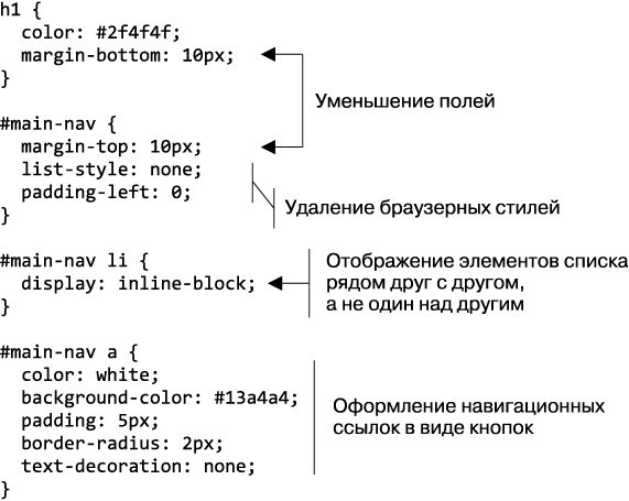 В листинге 1.19 показан CSS-код для этих ссылок.