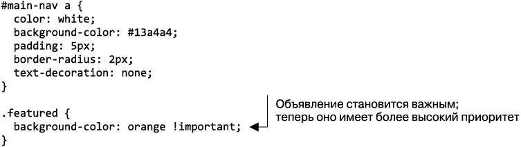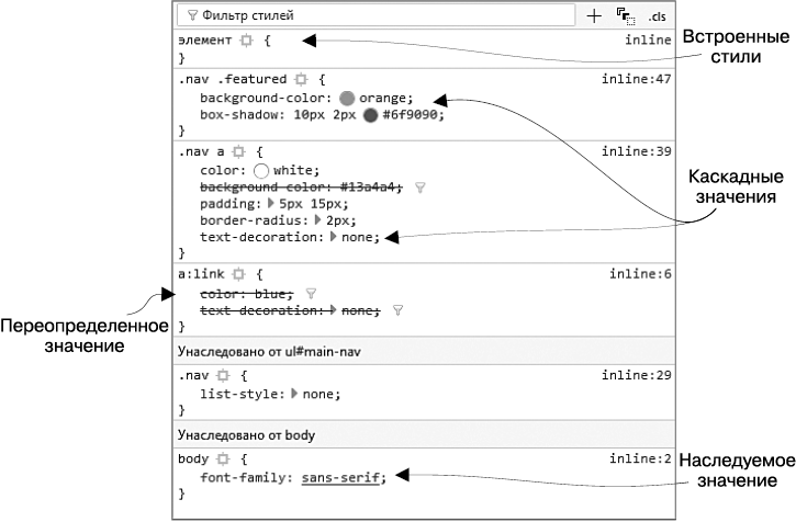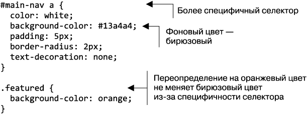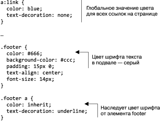 Вы можете использовать ключевое слово inherit и для принудительного наследования свойства, которое обычно не наследуется, например параметров границ или отступов. Этот прием применяется на практике в нескольких случаях, и вы увидите один из них в главе 3, когда мы займемся блочной моделью.