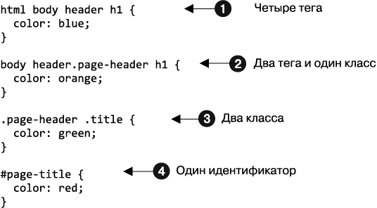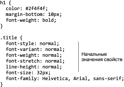 На первый взгляд может показаться, что код <h1 class = "title"> сделает шрифт заголовка полужирным, но это не так. Примененные стили эквивалентны стилям из следующего кода (листинг 1.18).