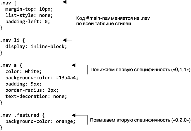 • В главе 9 описано, как организовать каскадные таблицы стилей в модули, чтобы код стал многоразовым и удобным в сопровождении.