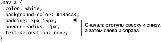 Однако чаще указывают два значения. Небольшие элементы лучше выглядят, когда слева и справа отступы больше, чем сверху и снизу. Этот подход идеален для форматирования кнопок или навигационных ссылок на странице (рис. 1.14).