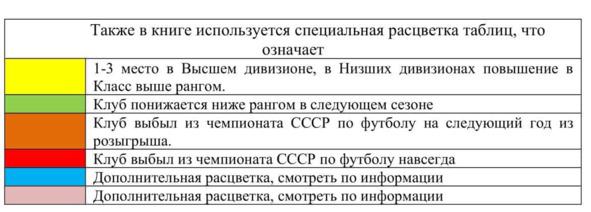 Если рассматривать материал, представленный в книге, то он представляет собой шахматную турнирную таблицу с указанием результатов сохранившихся (увы, не всех) до нашего времени футбольных матчей. Если имеется корректировка указанных в таблице матчей, то она приводится сразу внизу таблицы.