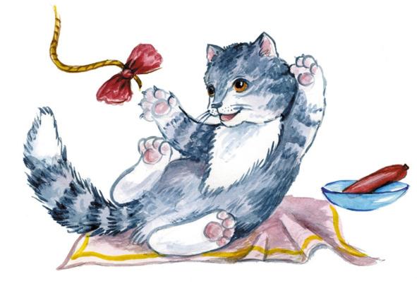 Была у кошки миска. В миске лежала… Думаете, сосиска? Нет. В миске лежала каша. А сосиска в миске не лежала, потому что киска сосиски обожала. Киска сосиску съедала вмиг, а потом на диван… Думаете, что прыг? Правильно. Матрёшка на диван прыг-скок, а там бабушкин… Правильно: клубок или шерстяной носок, или пуховый платок.