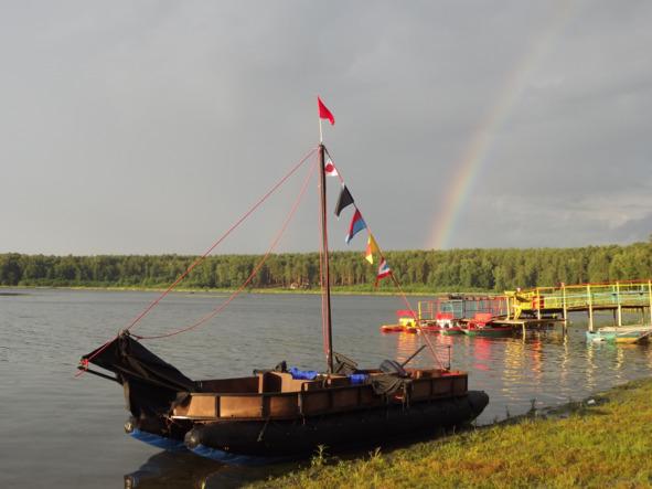 Летом 2017 года мы, скромная компания яхтсменов, расположились палаточным лагерем на крутом берегу озера Большой Кисегач. Среди нас была довольно примечательная личность — Александр Петрович — человек с военным прошлым и соответствующими манерами: громким командным голосом и привычкой к четкой субординации. Спорить он не любил: как скажет, так и будет, никто не смел перечить. Выйдя на пенсию, он всерьез увлекся парусными судами и своими руками смастерил дракар — корабль викингов, в переводе с древнескандинавского буквально «корабль-дракон». Дракар Александра Петровича изначально был куплен и поставлен на учет как двенадцатиместный надувной катамаран. Но после того, как над ним своими золотыми руками поколдовал Александр Петрович, судно оказалось на себя не похоже — неизменным осталось лишь официальное наименование в паспорте плавсредства да поплавки, которых всё равно не видно. На надувном катамаране Александр Петрович постелил фанерную палубу, оборудовал его сиденьями, между поплавками устроил маленький трюм, приходившийся очень кстати во время дальних походов. Кроме того, катамаран, ныне дракар, был снабжен мачтой с традиционным полосатым чёрно-синим парусом викингов и необычным для таких транспортных средств бензиновым двигателем «Меркурий», к которому Александр Петрович, умелый кузнец и сварщик, приладил водомётное кольцо для защиты лопастей от камней на мелководье и увеличения маневренных характеристик судна. Появились в арсенале и пять пар вёсел. Получился этакий парусно-гребно-моторный гибрид. В сложенном состоянии дракар помещался в обычный автомобильный прицеп, на сборку-разборку уходило два часа. Добрая половина рассказов Александра Петровича была о его любимом детище — дракарушке. Мастер разговаривал со своим творением, словно с человеком: хвалил или, напротив, выговаривал за строптивость. С чьей-то лёгкой руки нашего судостроителя мы в шутку так и прозвали — Дракаром Петровичем.