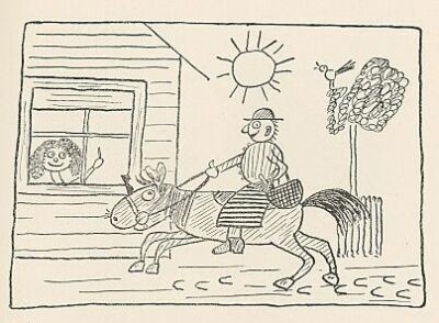 Riding in a rattle-cart that jogs and jolts and shakes,