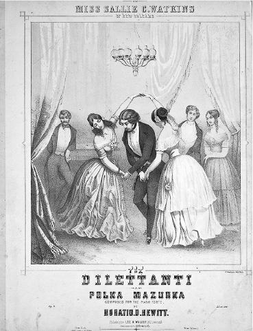 {3} Мазурка. Иллюстрация на обложке The Dilettanti Polka Mazurka. 1850 год. The Library of Congress.