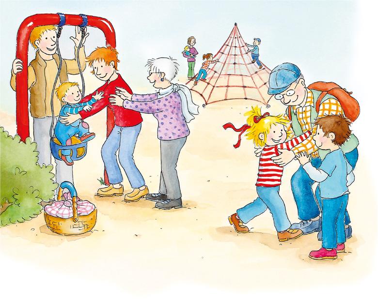 Конни давно не виделась с Михаэлем, поэтому с нетерпением высматривает его на другом конце парковки, пока папа с мамой достают из багажника вещи для пикника и коляску Якоба.