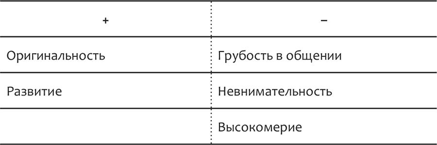 1) Составьте таблицу из положительных ассоциаций, которым бы вы хотели соответствовать, и отрицательных, которых хотели бы избегать.