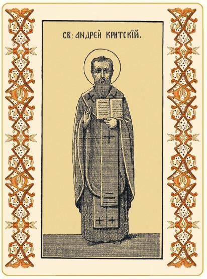 В тот великий подвижник родился в VII в. в Дамаске. До семилетнего возраста он был нем и однажды после причащения Святых Христовых Тайн чудесным образом исцелился и заговорил. С тех пор мальчик усердно учился и особенно полюбил чтение священных книг. Когда ему исполнилось четырнадцать лет, родители отвезли его в Иерусалим, и святой патриарх Софроний принял отрока в церковный клир. Там Андрей вёл добродетельную и строгую жизнь. В это время произошло горестное событие: Иерусалим завоевали мусульмане, но Андрей не бежал, а остался в святом городе.