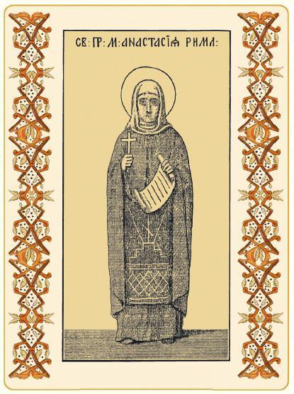 Анастасия родилась в Риме во второй половине III в., в богатой знатной семье. При отце-язычнике, а матери-христианке девочке было нелегко утвердиться в истинной вере, но мать с помощью учителя Хрисогона смогла воспитать дочь христианкой и дать ей достойное образование.