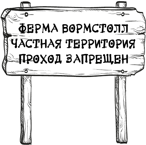 С другой стороны, в дальнем углу поля, стояла одинокая лошадь: уткнувшись носом в живую изгородь и отмахиваясь от мух хвостом, она лакомилась ежевикой. В конце дороги виднелась старая каменная ферма. Спереди она выглядела пустой и нежилой, со слепыми окнами и мелкими поганками, которые росли прямо на пороге. Я постучал, но никто не ответил. Похоже, дверь не открывали уже много лет. Мне захотелось развернуться и пойти домой. Но мы с сэром Криспином проделали такой длинный путь! Меня сюда привело объявление на окне Магазина Сладостей, и так легко я не сдамся.