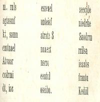 — Что ж бы это такое значило? — бормотал он: что ж бы это такое значило? Кажется, это то, что мы называем криптограммой, то есть формой письменной речи, в которой смысл в буквах, преднамеренно расположенных в рассыпную… А поставьте вы буквы как следует и фраза будет яснее божьего дня… Творец мой! может здесь объяснение какого-нибудь великого открытия!